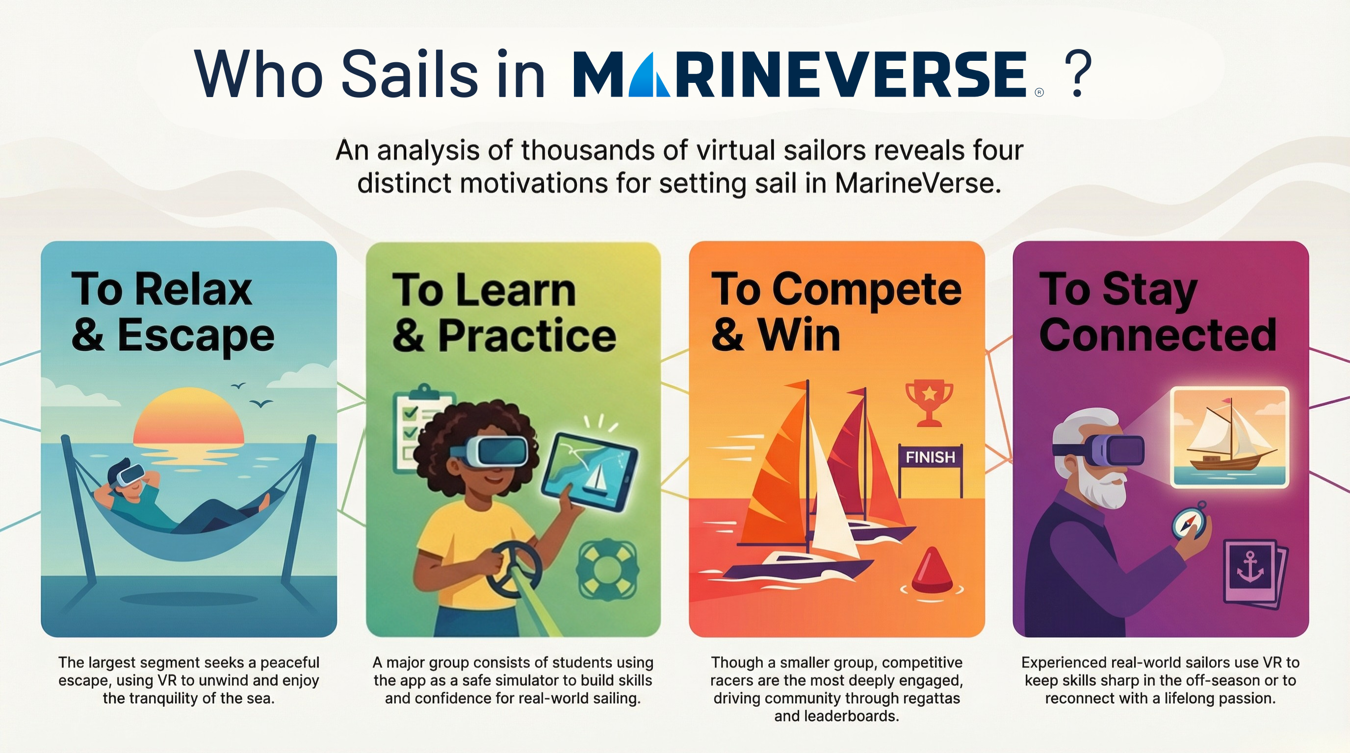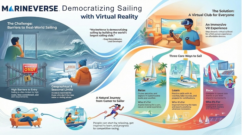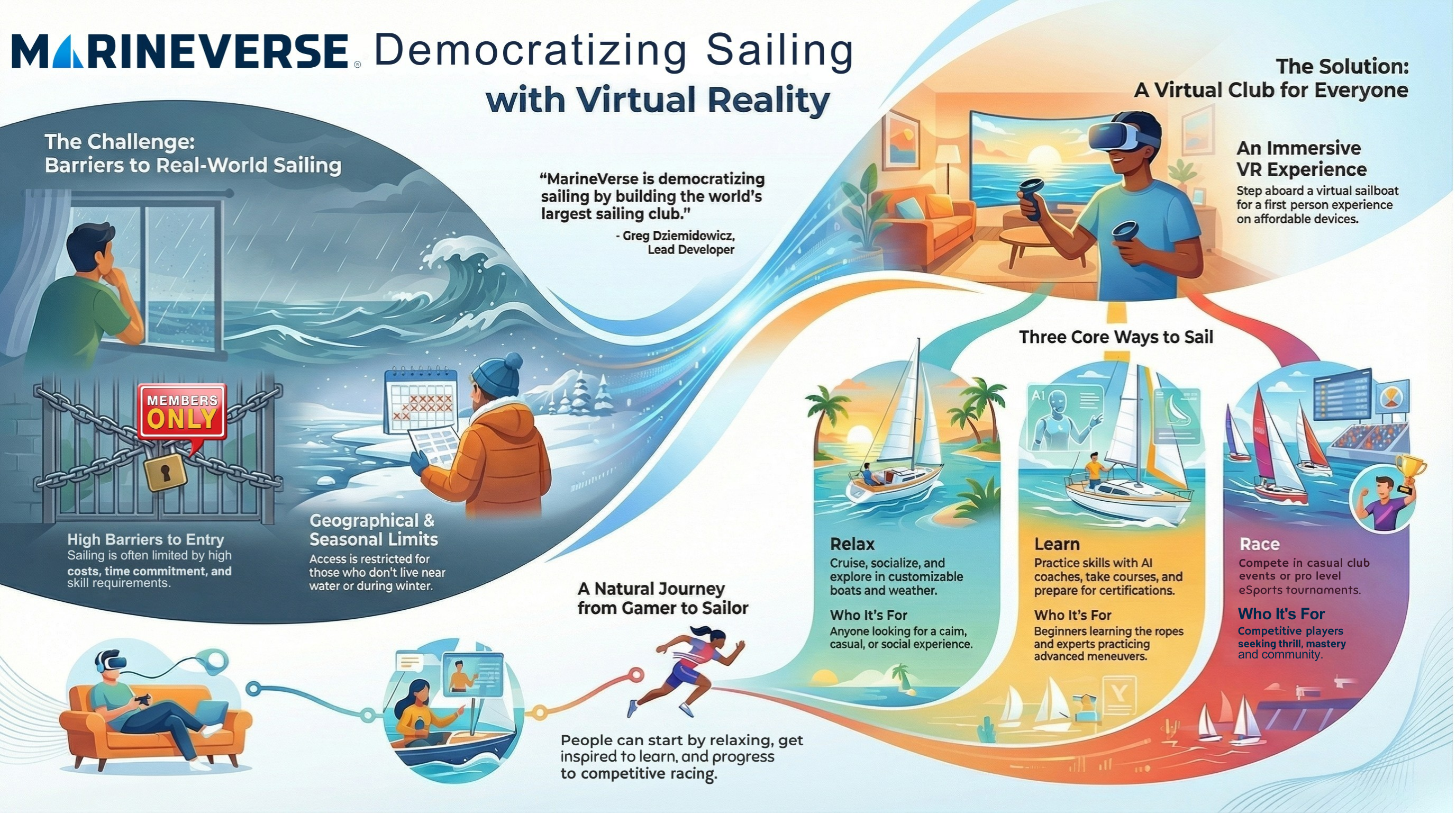 MarineVerse Sailing Club brings authentic sailing experiences into VR, enabling people to “Sail More Often” - whether for learning, competing, or pure relaxation.