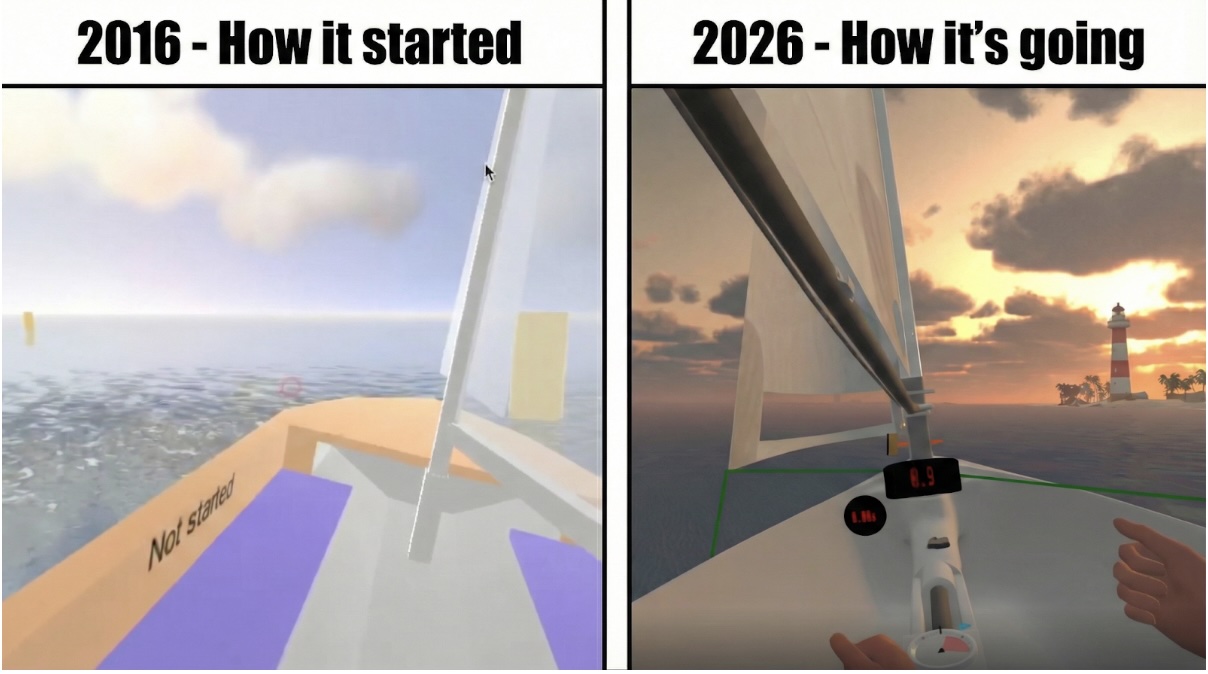 2016 – The year we proved you could feel the joy of sailing without leaving your house. It started with early VR Regatta prototypes on the Oculus Rift and HTC Vive. We realized that even with simple graphics, the feeling of being on the water was there. Our “Relaxing” mode showed us that VR wasn’t just for gaming-it was for experiencing the freedom of the open water.